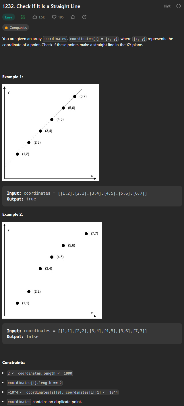 배열의 첫 점과 끝점으로 식을 만든 뒤 배열을 순회하면서 식에 대입했을 때 식이 성립하는지 확인한다.