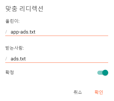 맞춤 리디렉션을 클릭한 후 다음을 입력하고 저장한다.
